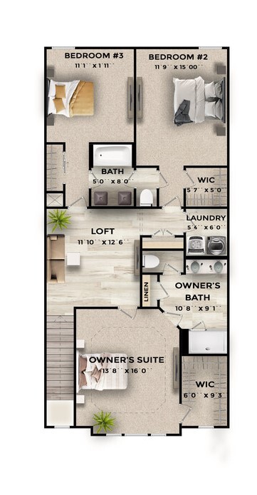 Cambridge TH - Plano 3 Los planos de la planta son una interpretación artística. Todas las dimensiones son aproximadas. Los tamaños o el detalle del producto real y sus especificaciones pueden variar. No todas las características están disponibles en todos los hogares para rentar. Los precios y la disponibilidad están sujetos a cambios. El alquiler que se muestra es mensual. Se pueden aplicar ciertos cargos, por ejemplo, entrega de paquetes, recolección de basura, agua, servicios, etc. Depositos varian. Consulta a un representante para conocer detalles.