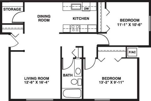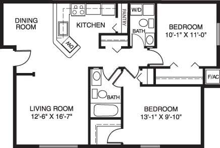 Modelo de apartamento: One Bedroom Cape CodDesde $8761 Dormitorio, 1 Baño, 610-626 sq ftDisponible AhoraPlanosFotos![]()