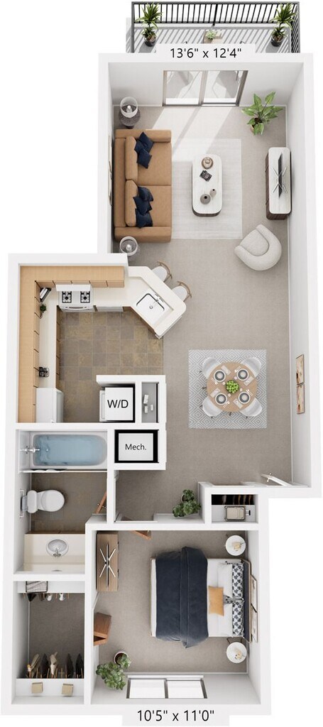 1 Dormitorio, 1 Baño, 714-733 pies²Disponible AhoraEl más grandeEsta opción tiene las unidades más grandes para este modeloGalería del Modelo