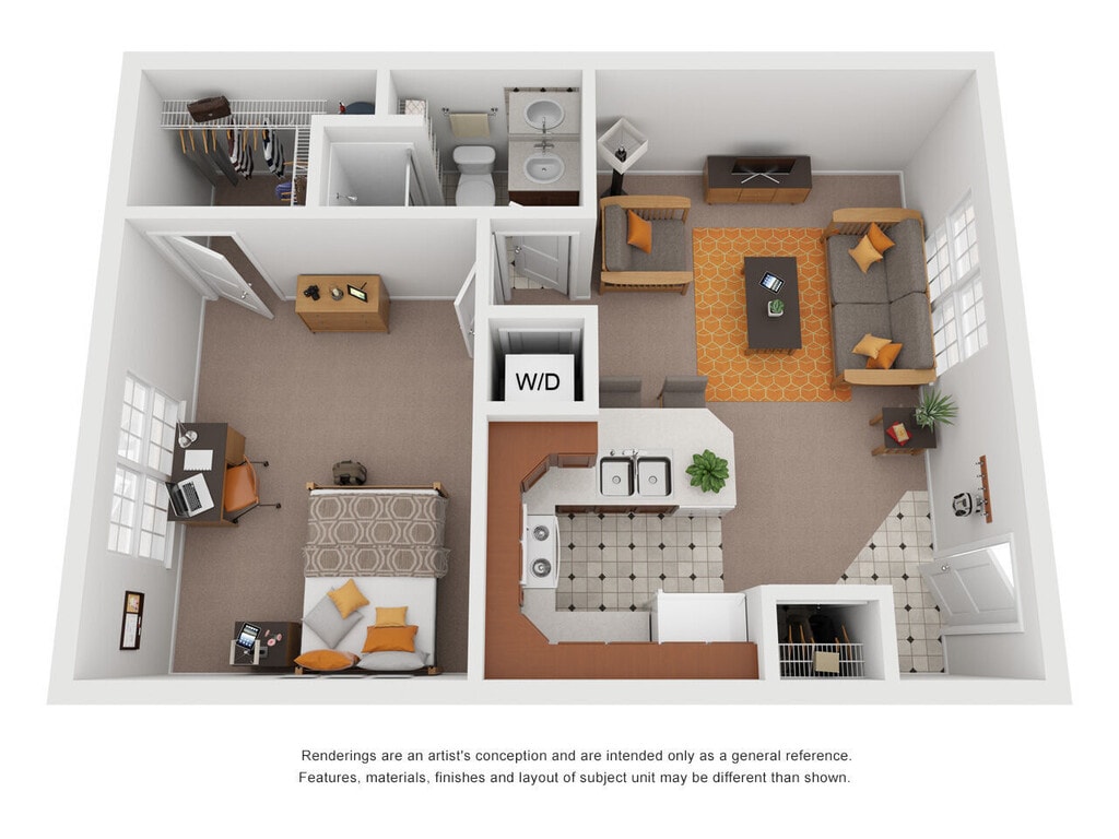 1 Dormitorio, 1 Baño, 541 pies²Disponible AhoraGalería del Modelo