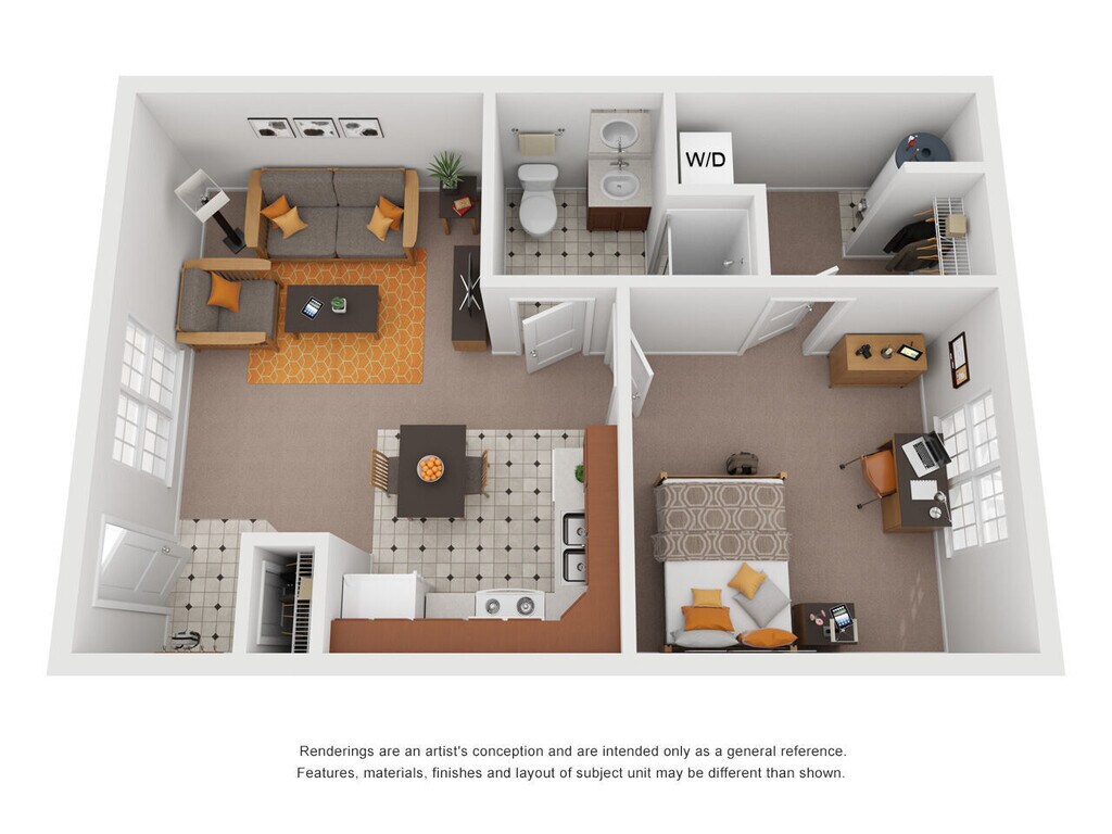 1 Dormitorio, 1 Baño, 650 pies²Disponible AhoraGalería del Modelo