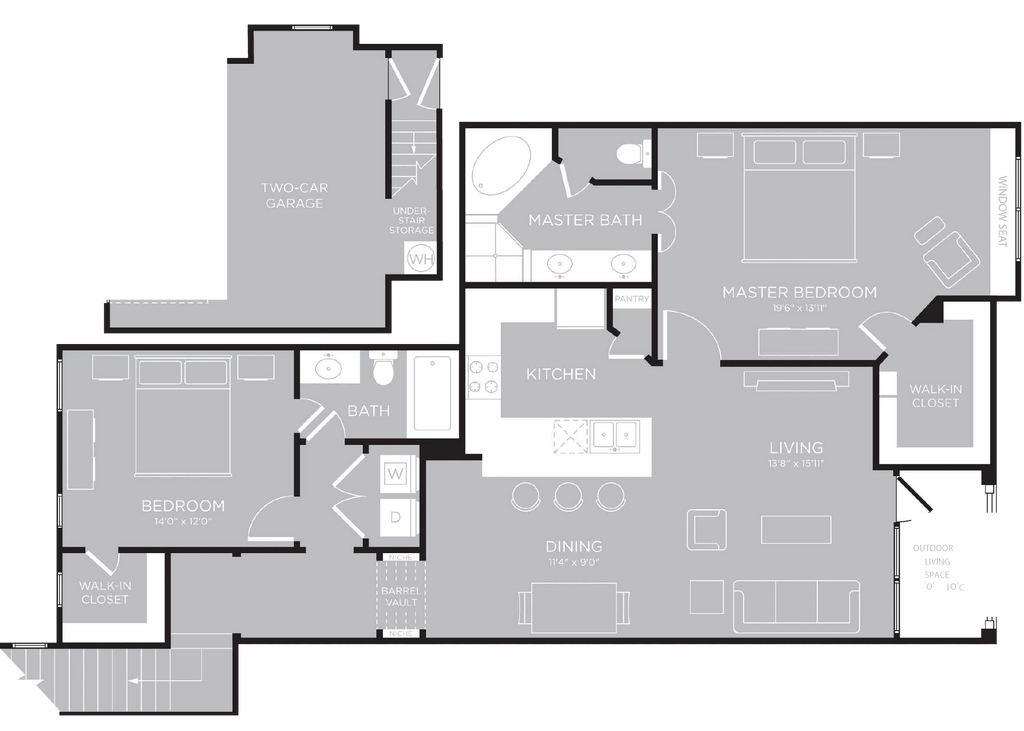 1 Dormitorio, 1 Baño, 750 pies²Disponible AhoraGalería del Modelo