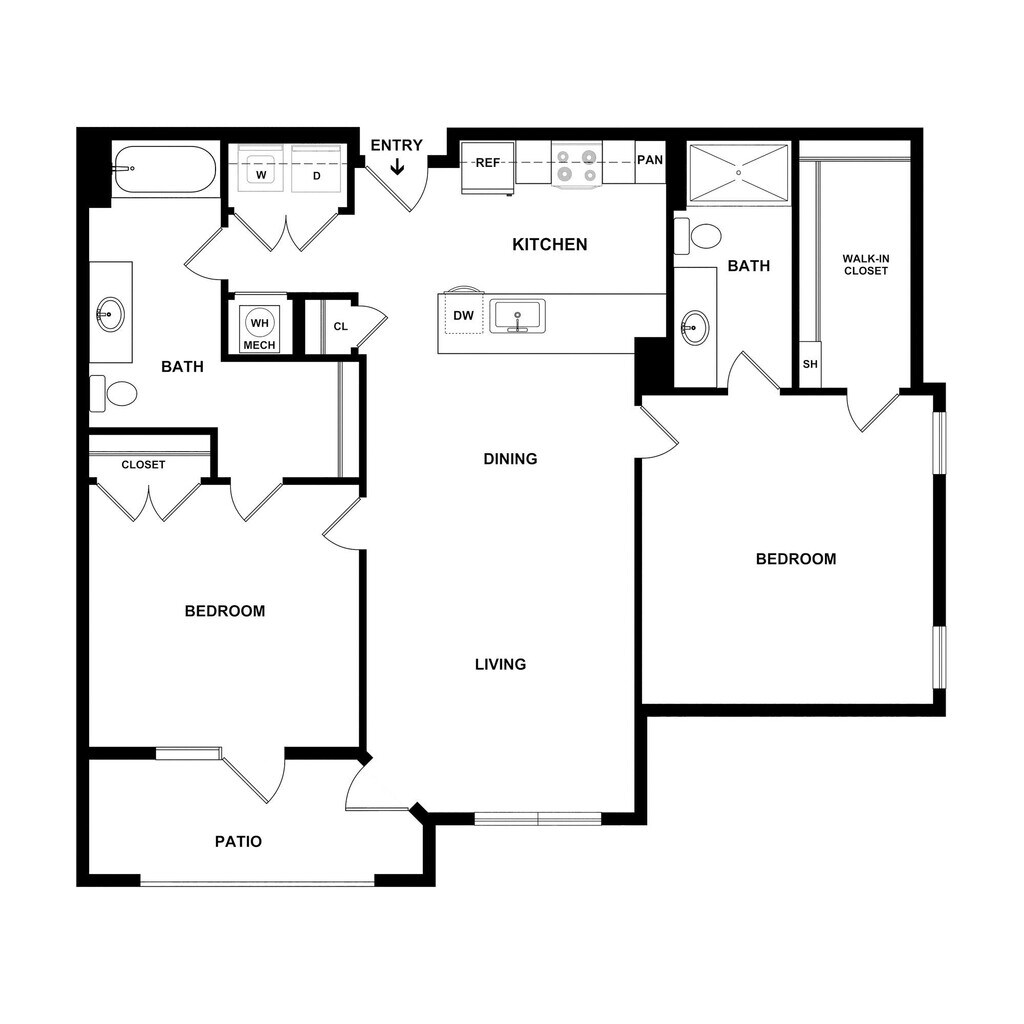 1 Dormitorio, 1 Baño, 742 pies²Disponible AhoraGalería del Modelo