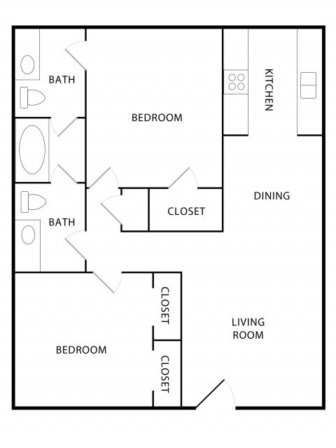 Modelo de apartamento: B32 Dormitorios, 1.5 Baños, 850 sq ftNo Disponible![]()