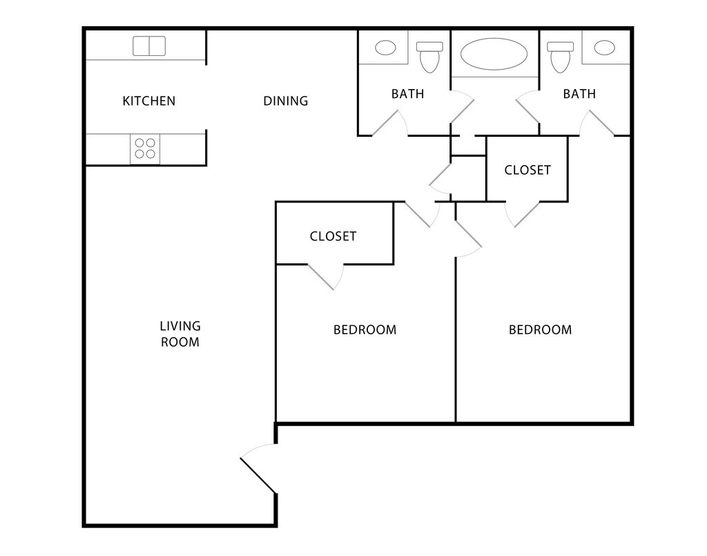 Modelo de apartamento: B22 Dormitorios, 1.5 Baños, 832 sq ftNo Disponible![]()