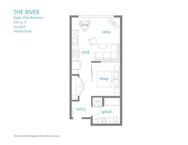 Modelo de apartamento: The RiverDesde $1,6501 Dormitorio, 1 Baño, 543 sq ftDisponible Ahora![]()
