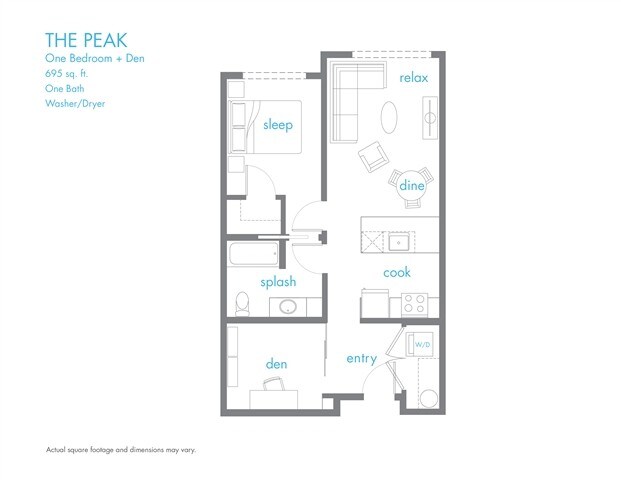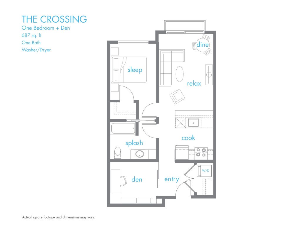1 Dormitorio, 1 Baño, 695 pies²Disponible AhoraGalería del Modelo