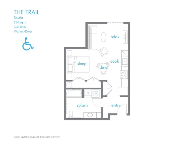 Modelo de apartamento: The Trail StudioLlame para PreciosEstudio, 1 Baño, 536 sq ftNo Disponible![]()