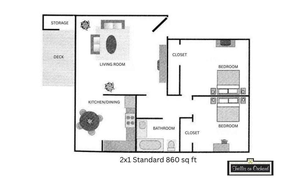 Trellis on Orchard ofrece apartamentos de 1 a 2 Dormitorios desde $1,360 con 680–870 pies cuadrados. Aquí está el precio actual y la disponibilidad:
