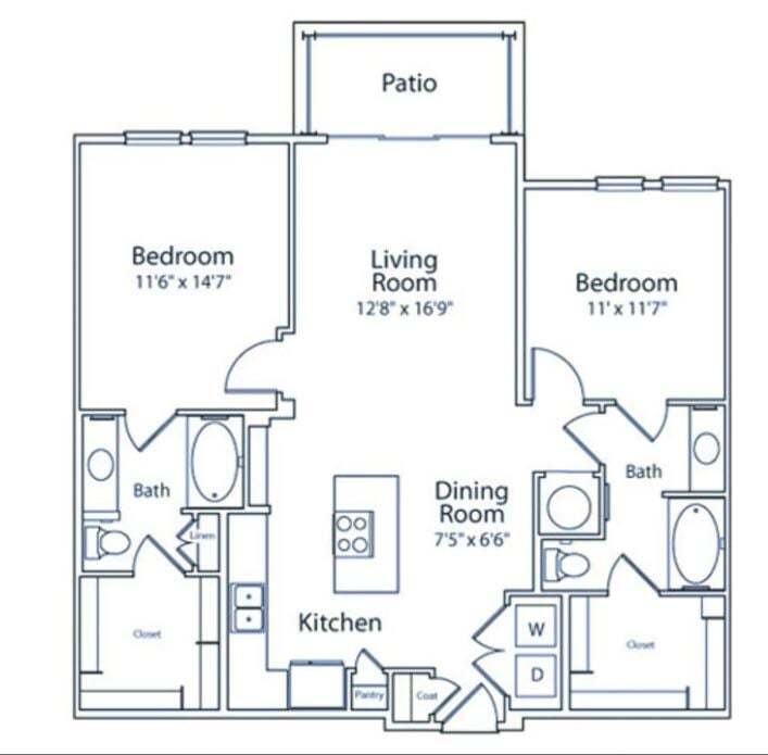 Modelo de apartamento: A2Llame para Precios1 Dormitorio, 1 Baño, 836 sq ftNo Disponible![]()