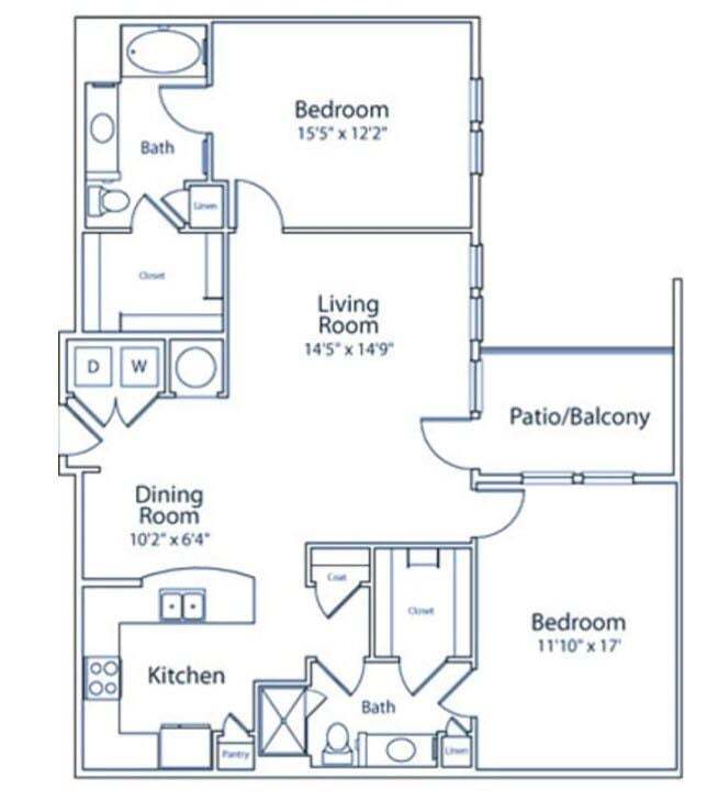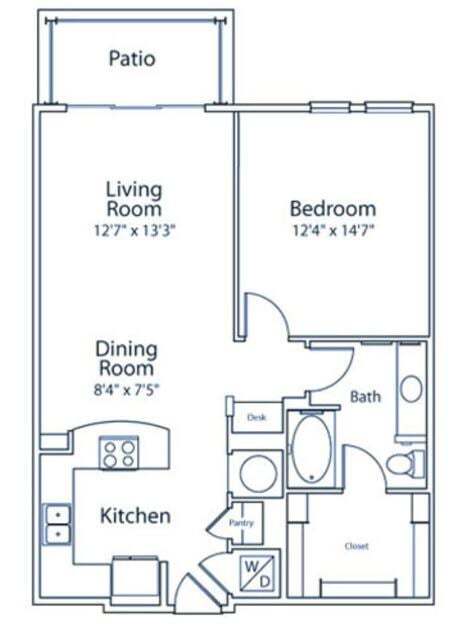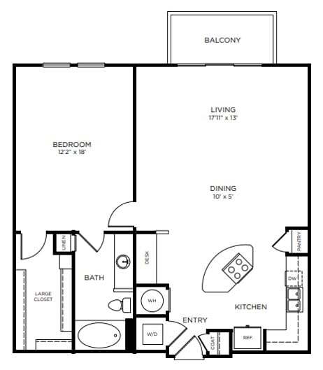 Modelo de apartamento: A1$1,4451 Dormitorio, 1 Baño, 777 sq ftDisponible Ahora![]()
