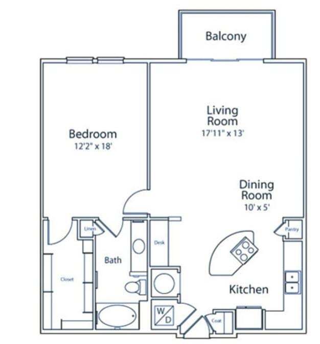Estudio, 1 Baño, 579 pies²Disponible AhoraGalería del Modelo