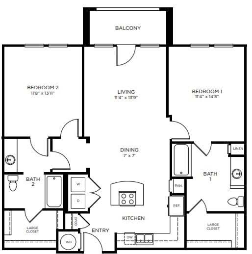 Modelo de apartamento: A13$1,5551 Dormitorio, 1 Baño, 913 sq ftDisponible Ahora![]()