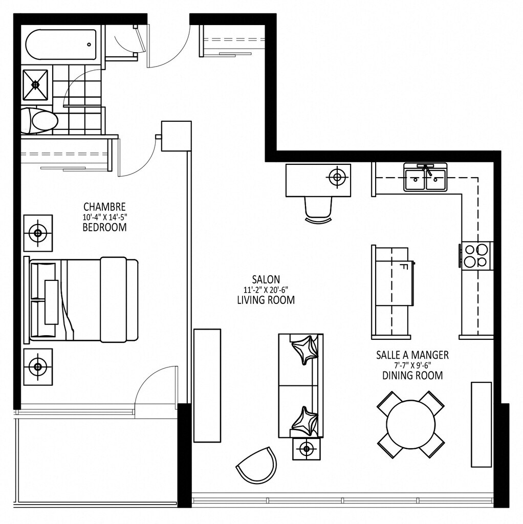 1 Dormitorio, 1 Baño, 520 pies²Disponible AhoraGalería del Modelo