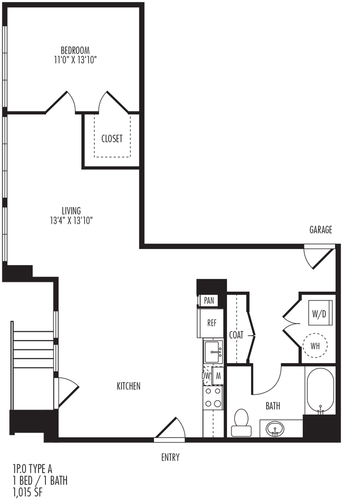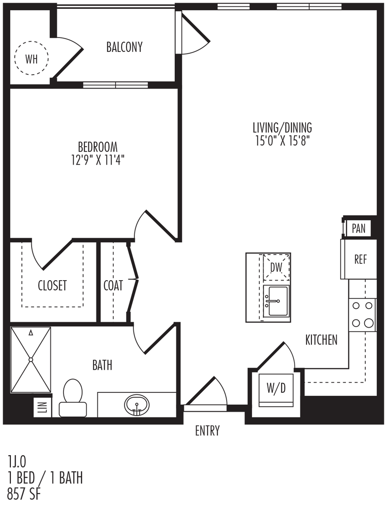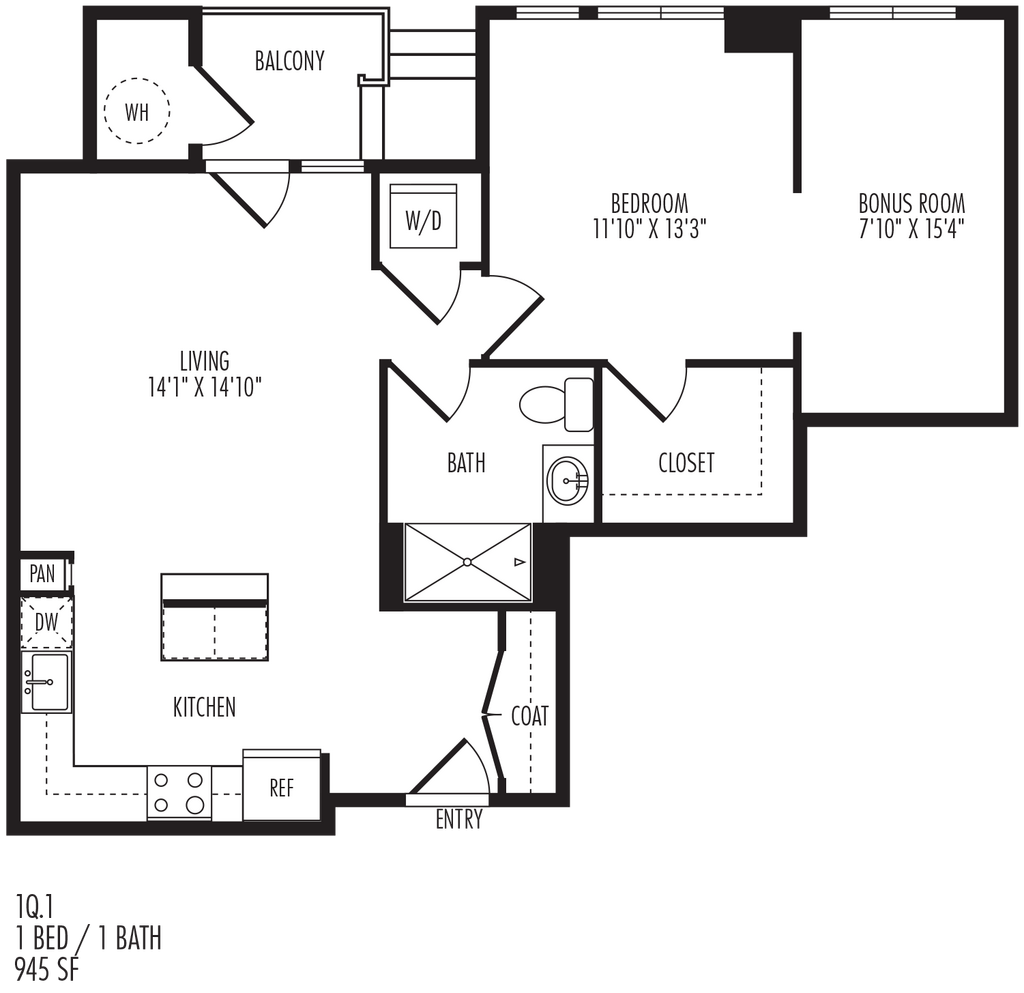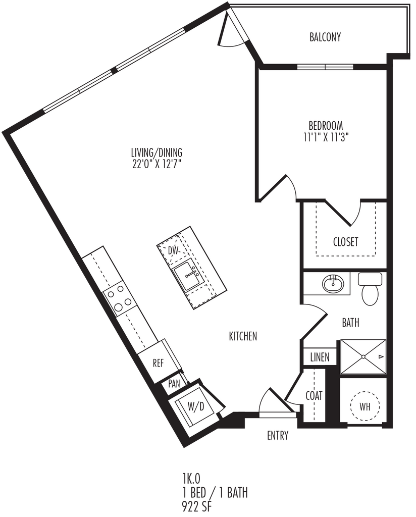 1 Dormitorio, 1 Baño, 845 pies²Disponible AhoraGalería del Modelo