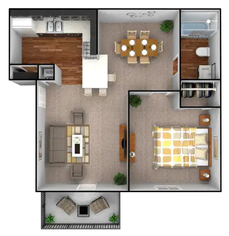 1 Dormitorio, 1 Baño, 671 pies²Disponible AhoraGalería del Modelo