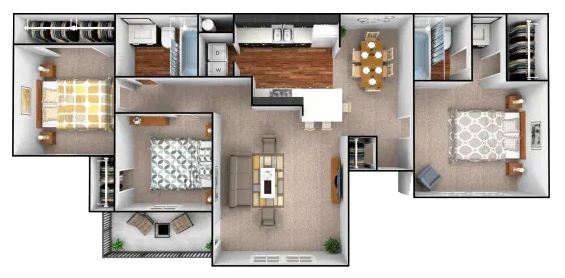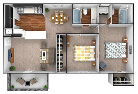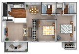 Modelo de apartamento: 1 bedroom, 1 bathroom$1,0001 Dormitorio, 1 Baño, 671 sq ftDisponible Ahora![]()