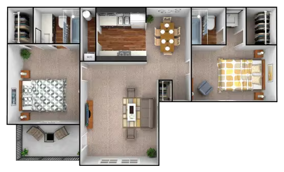 2 Dormitorios, 2 Baños, 841 pies²Disponible AhoraGalería del Modelo