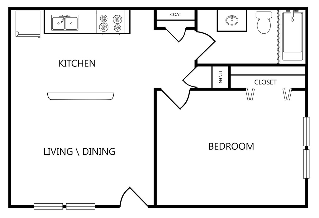 Modelo de apartamento: A1 Dormitorio, 1 Baño, 700 sq ftDisponible Ahora![]()