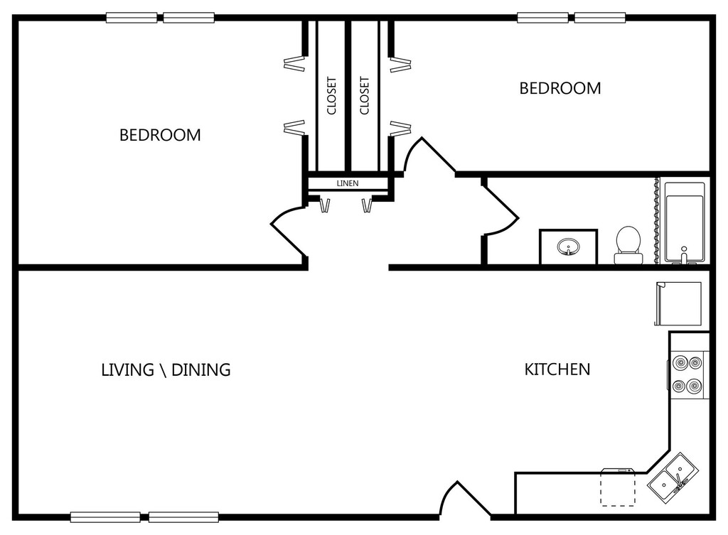 Modelo de apartamento: B2 Dormitorios, 1 Baño, 950 sq ftDisponible November 5, 2025![]()