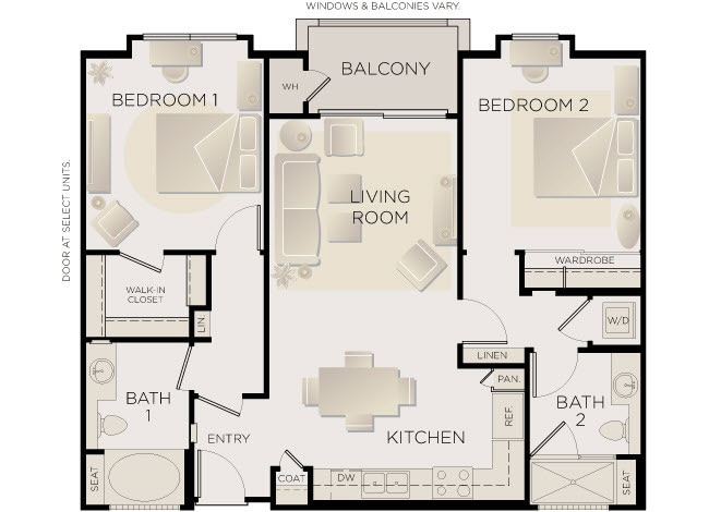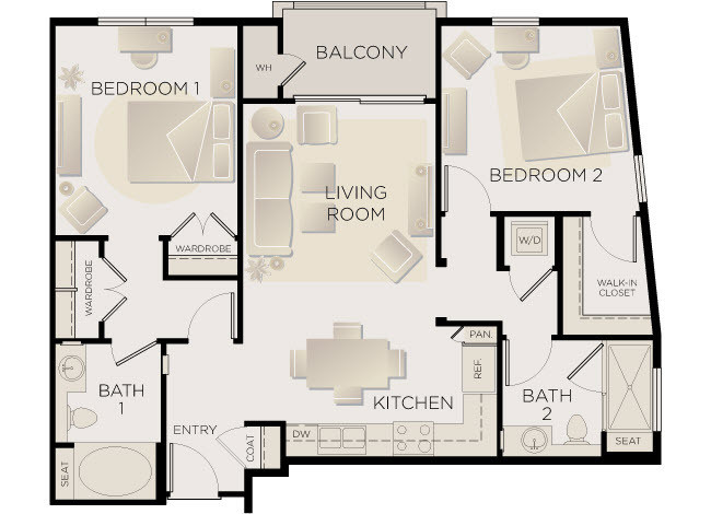 Modelo de apartamento: D2Desde $3,6832 Dormitorios, 2 Baños, 930 sq ftNo Disponible![]()