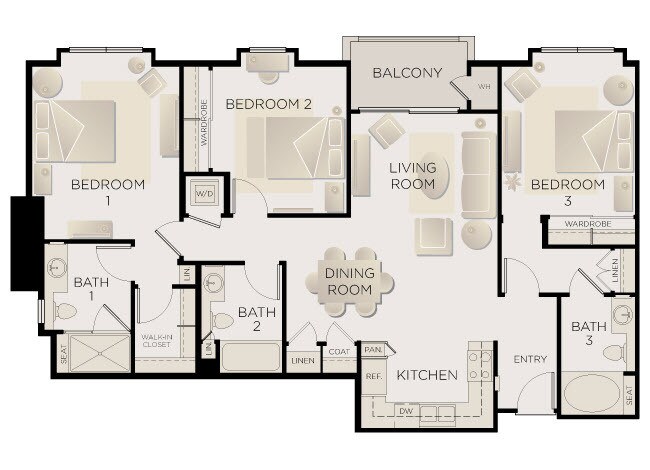 Modelo de apartamento: BDesde $3,2431 Dormitorio, 1 Baño, 720 sq ftNo Disponible![]()