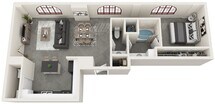 1 Dormitorio, 1 Baño, 863 pies²Galería del Modelo