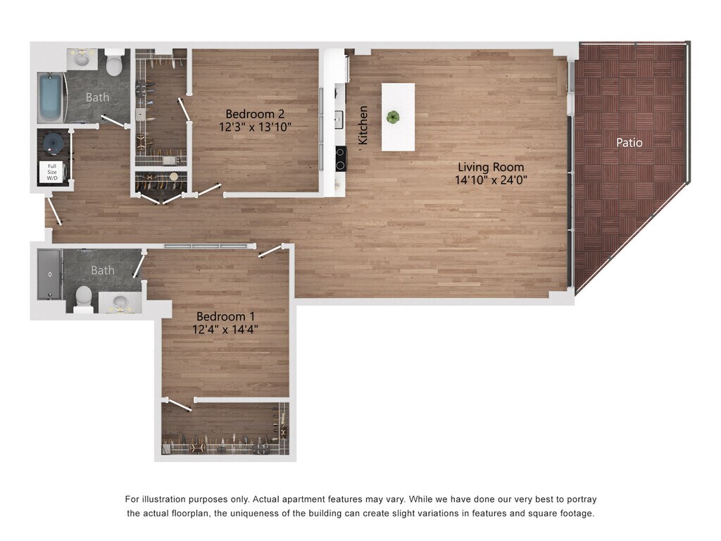 ST2 - Plano 1 Los planos son representaciones artísticas. Todas las dimensiones son aproximadas. El producto y las especificaciones reales pueden variar en tamaño o detalle. No todas las características están disponibles en cada vivienda en alquiler. Por favor, consulta con un representante para obtener más detalles.