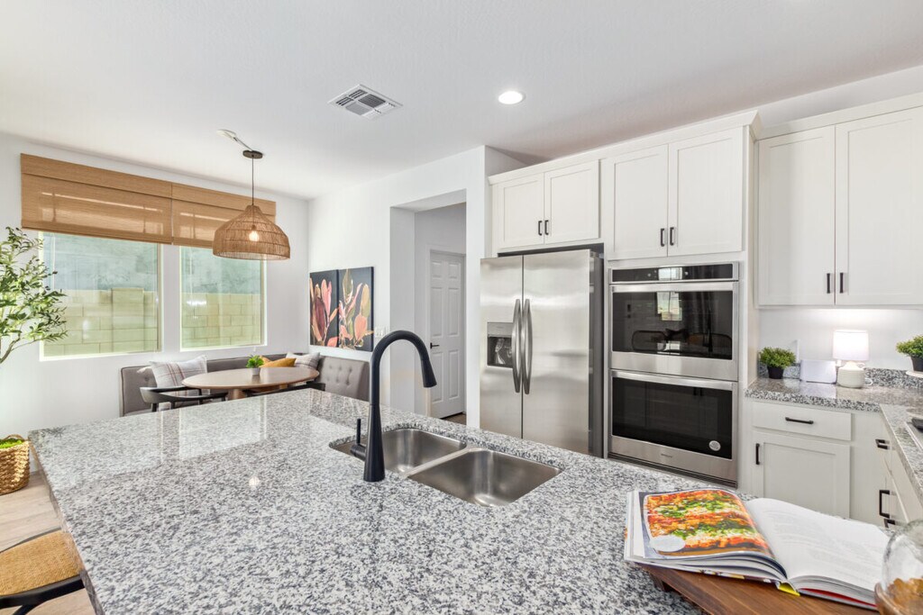 Tricon Gateway is a rental home community located in Mesa's Eastmark master-planned community, just six miles east of downtown Mesa, providing a charming retreat conveniently located near parks, shopping and dining. Every home includes a gourmet kitchen, granite countertops, stainless steel appliances, an attached garage, private yard with patio and turf, and smart home technology. Choose from six thoughtfully designed three- and four-bedroom floor plans with modern finishes.
