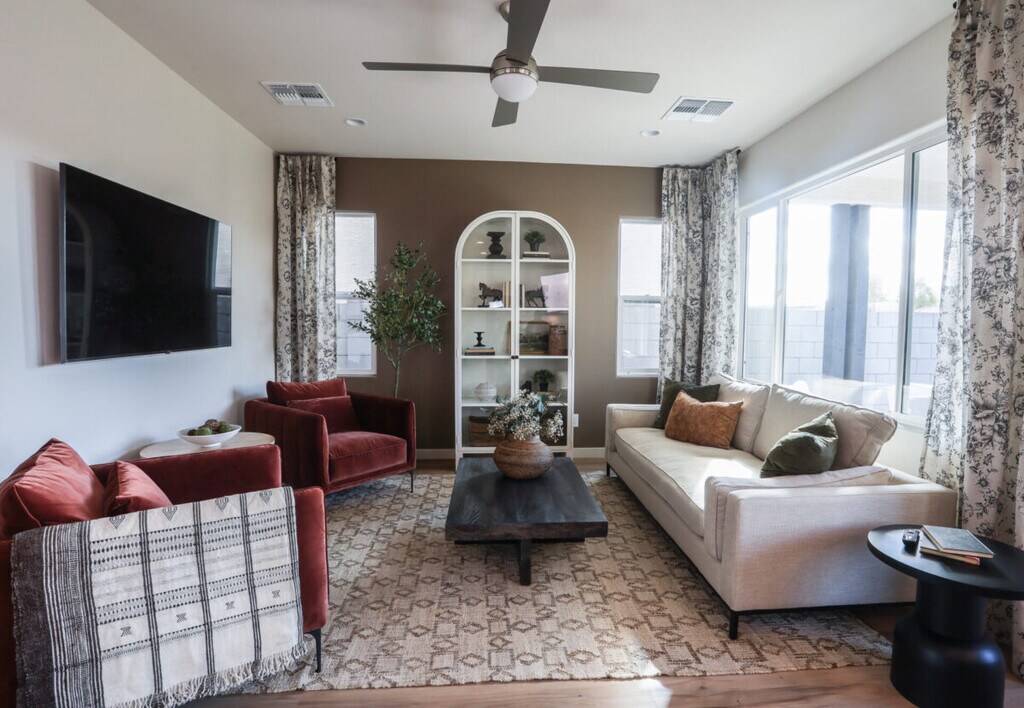 Tricon Hudson Crossing is a newly built rental home community located in Chandler, AZ — a suburb of Phoenix, approximately twenty miles east of downtown near shopping, dining and outdoor recreation. modern kitchen with quartz countertops, stainless steel appliances, and luxury vinyl flooring throughout and smart home technology. Choose from four thoughtfully designed three- and four-bedroom floor plans with modern finishes.