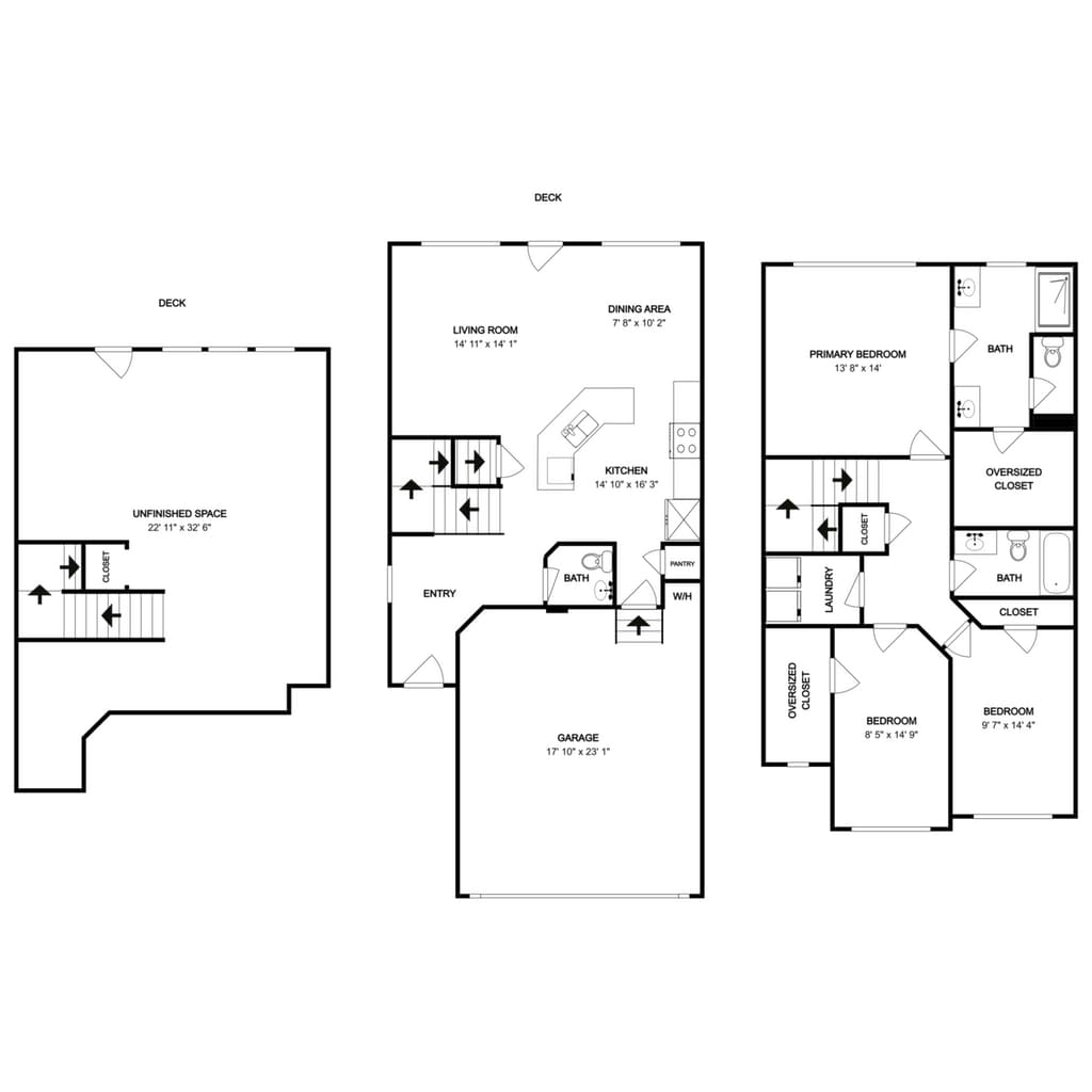 3 Dormitorios, 2.5 Baños, 1649 pies²Disponible AhoraGalería del Modelo