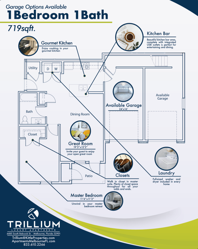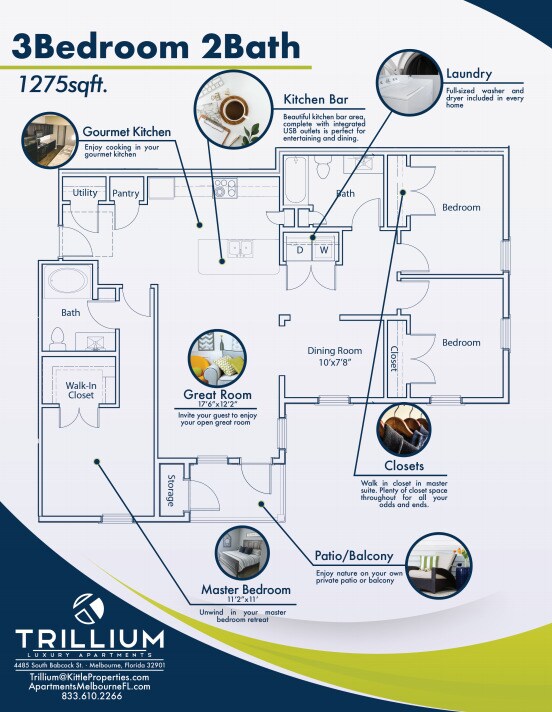 Bienvenido a Trillium, un nuevo y lujoso complejo de apartamentos ubicado en la hermosa Melbourne, Florida. Somos un complejo de apartamentos recientemente construido con 256 apartamentos ubicados justo en el vecindario de South Lakes. Nuestros apartamentos Melbourne están ubicados a una poca distancia en auto de las hermosas playas del Atlántico. Sabemos que encontrarás el hogar perfecto con nosotros por nuestra gran variedad de comodidades, ubicación central y proximidad a la arena y el sol de Florida.