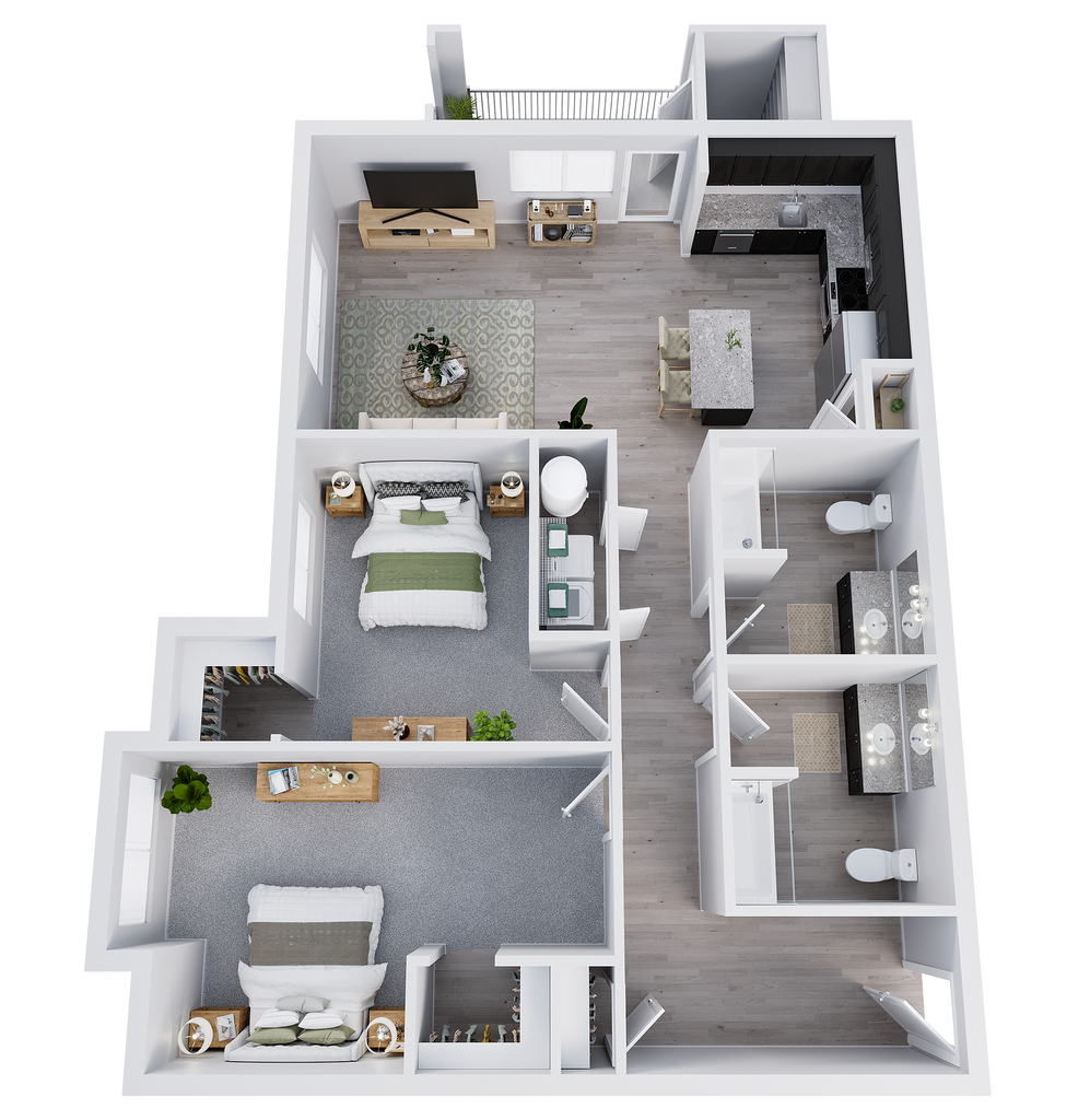 Modelo de apartamento: StarlingDesde $1,7252 Dormitorios, 2 Baños, 907 sq ftDisponible Ahora![]()