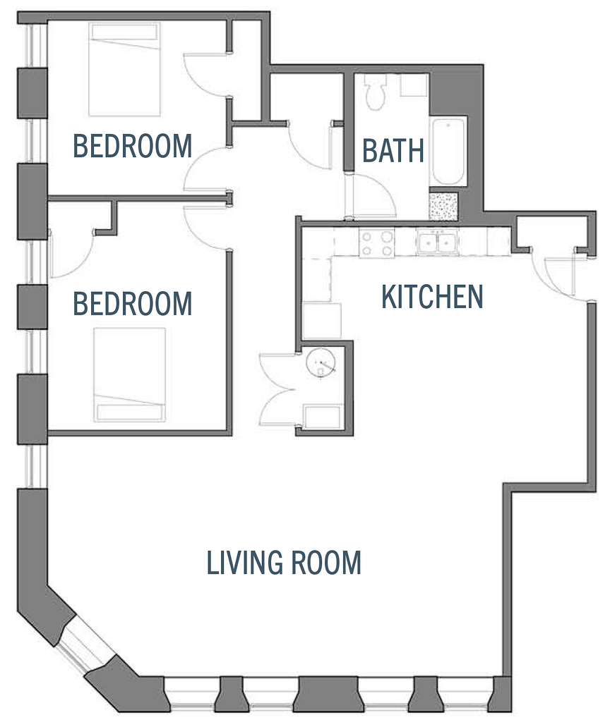 Modelo de apartamento: B40%2 Dormitorios, 1 Baño, 1462 sq ftNo Disponible![]()