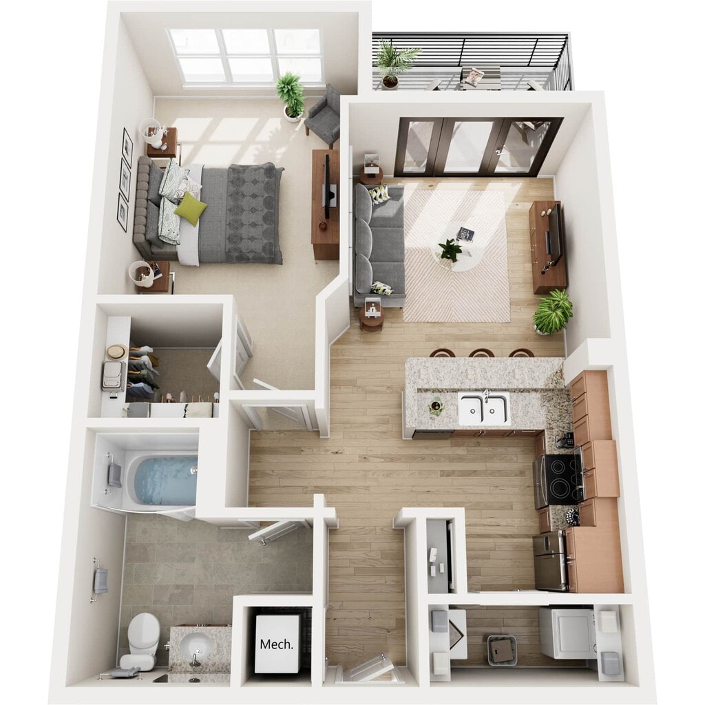 1 Dormitorio, 1 Baño, 817 pies²Disponible AhoraGalería del Modelo