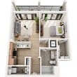 1 Dormitorio, 1 Baño, 853 pies²Disponible AhoraGalería del Modelo