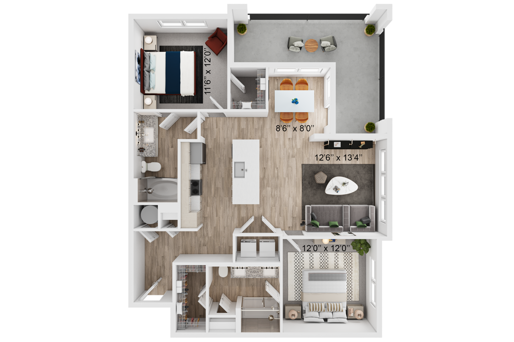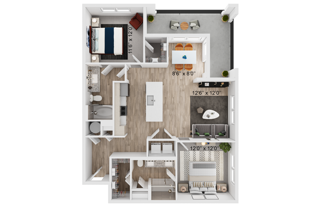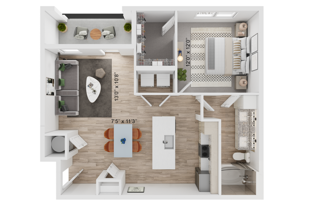 Modelo de apartamento: A1(a)Desde $1,2051 Dormitorio, 1 Baño, 732 sq ftDisponible Ahora![]()