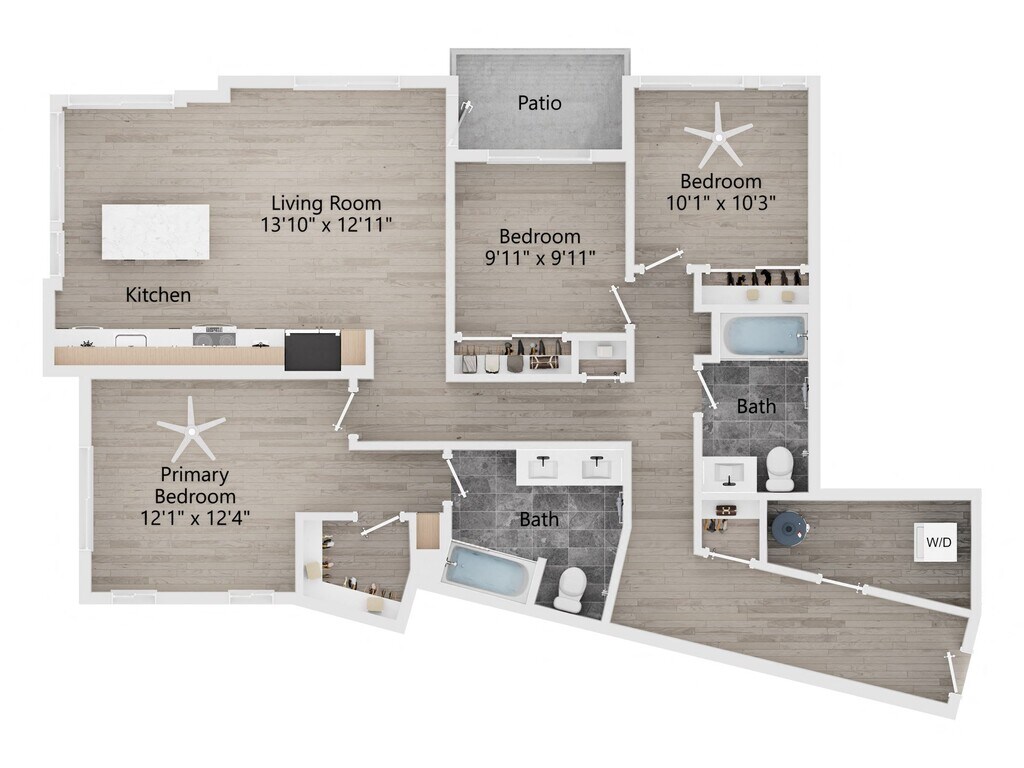 Modelo de apartamento: A3Llame para Precios1 Dormitorio, 1 Baño, 759 sq ftNo DisponibleLos planos de la planta son una interpretación artística. Todas las dimensiones son aproximadas. Los tamaños o el detalle del producto real y sus especificaciones pueden variar. No todas las características están disponibles en todos los hogares para rentar. Los precios y la disponibilidad están sujetos a cambios. El alquiler que se muestra es mensual. Se pueden aplicar ciertos cargos, por ejemplo, entrega de paquetes, recolección de basura, agua, servicios, etc. Depositos varian. Consulta a un representante para conocer detalles.