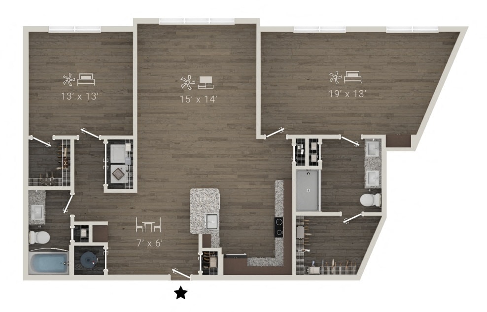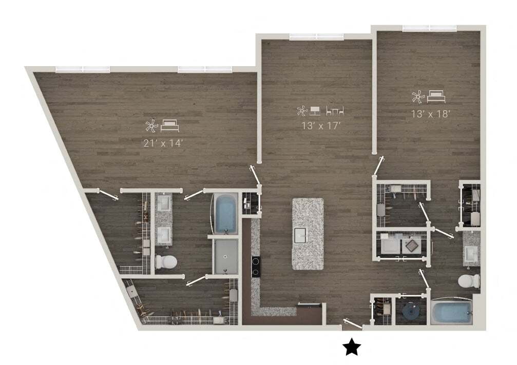 1 Dormitorio, 1 Baño, 684-752 pies²Precio Mensual TotalDisponible AhoraGalería del Modelo
