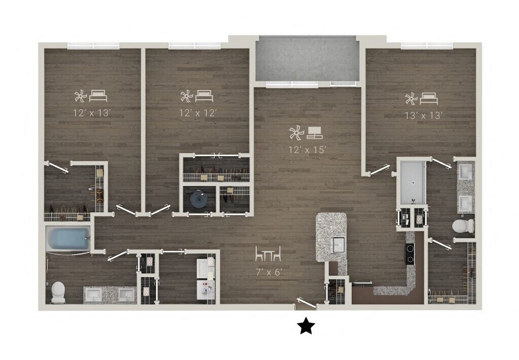 1 Dormitorio, 1 Baño, 684-752 pies²Disponible AhoraGalería del Modelo