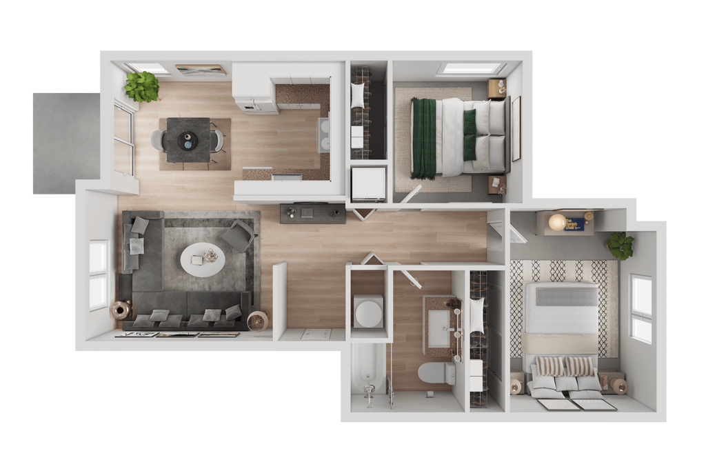 2 Dormitorios, 1 Baño, 867 pies²Disponible AhoraGalería del Modelo