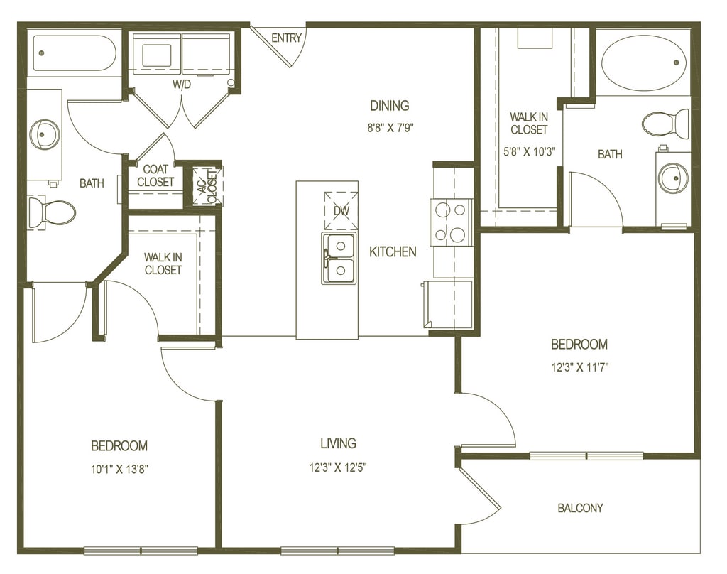 Modelo de apartamento: A2$1,5051 Dormitorio, 1 Baño, 748 sq ftDisponible March 30, 2026![]()