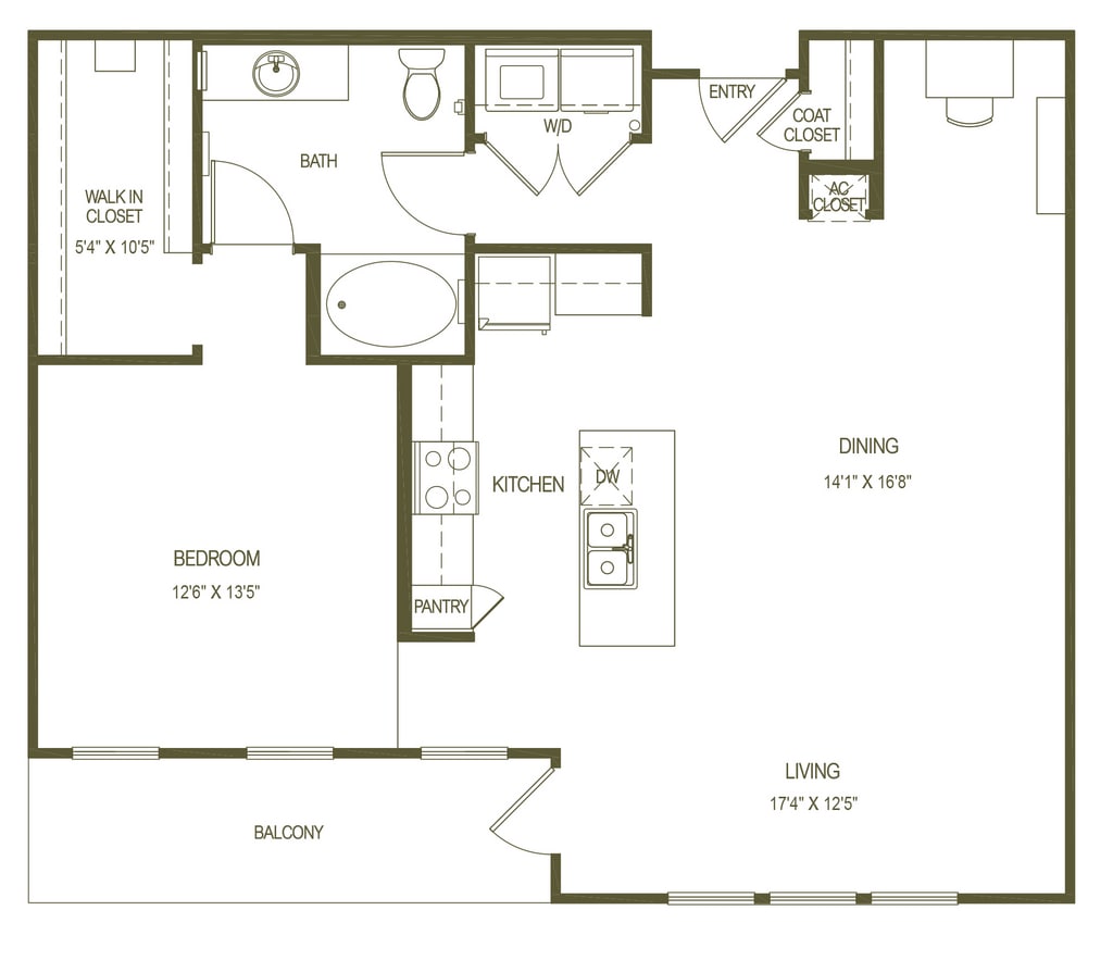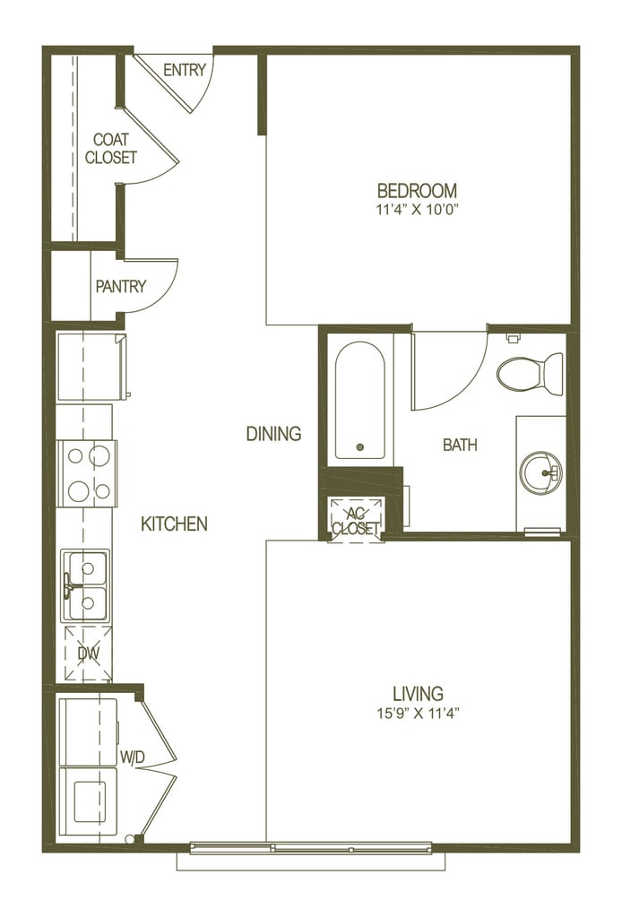 A2 - Plano 1 Unidad de apartamento: 411Modelo de apartamento: A2$1,5051 Dormitorio, 1 Baño, 748 sq ftDisponible March 30, 2026Plano: A4