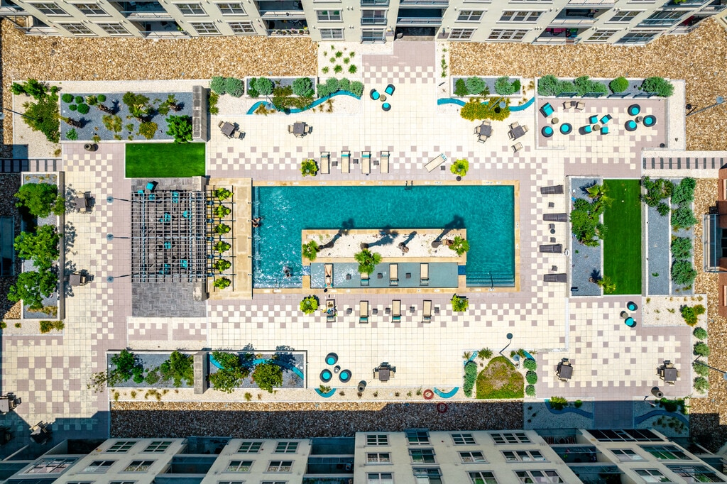 En Trove Southtown, la vida estilo centro turístico te invita con impresionantes comodidades como nuestro impresionante patio, que cuenta con una espectacular piscina, terraza, fuentes y cabañas. Nuestro gimnasio de última generación y el estudio de yoga te ayudarán a superar tus objetivos de ejercicio, mientras que nuestro salón en el primer piso te ayudará a relajarte y recargar energías con nuestra área de juegos, televisores, Wi-Fi y una cocina grande. El estacionamiento subterráneo con acceso controlado y el acceso a paquetes las 24 horas también están a tu servicio. Nuestros apartamentos tipo estudio, de una y dos habitaciones y casas adosadas de dos pisos con entradas privadas ofrecen una vida de lujo gracias a nuestras modernas cocinas y baños, electrodomésticos de acero inoxidable, vestidores enormes y techos altísimos.