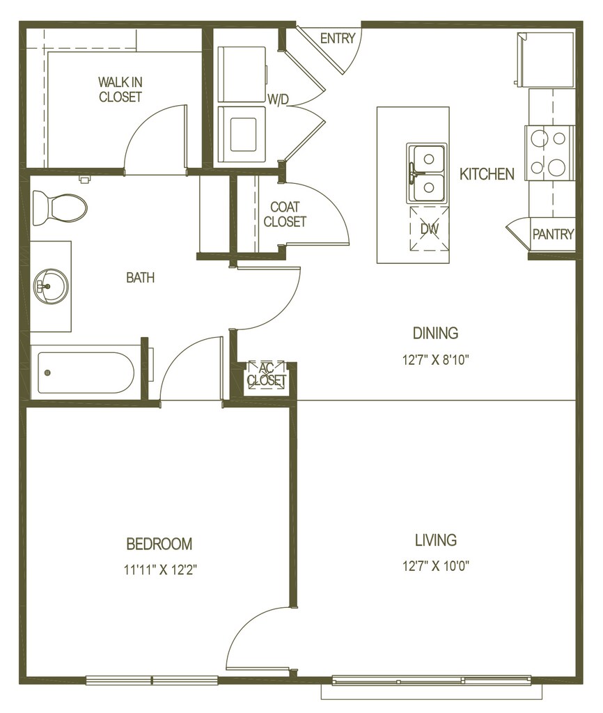 1 Dormitorio, 1 Baño, 818 pies²Galería del Modelo