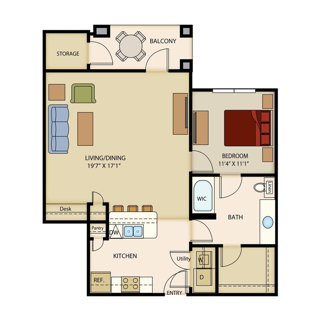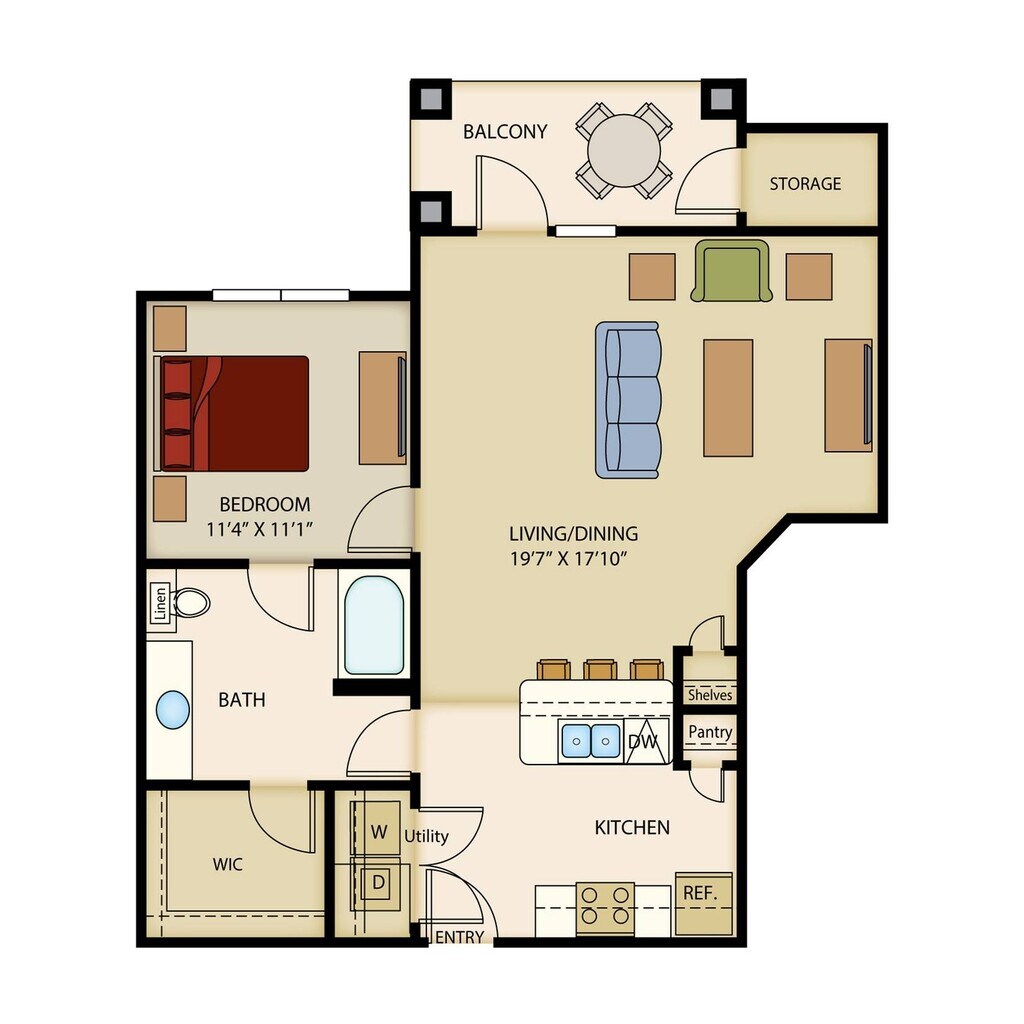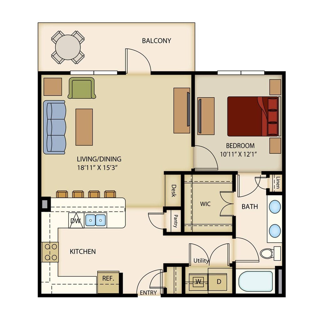 1 Dormitorio, 1 Baño, 638 pies²Disponible AhoraGalería del Modelo