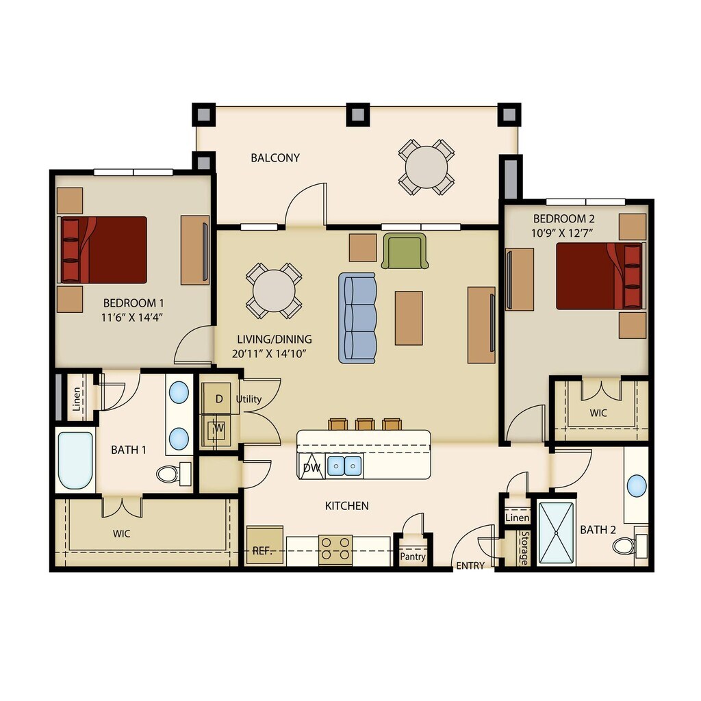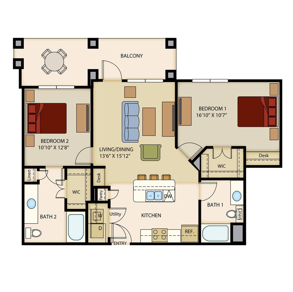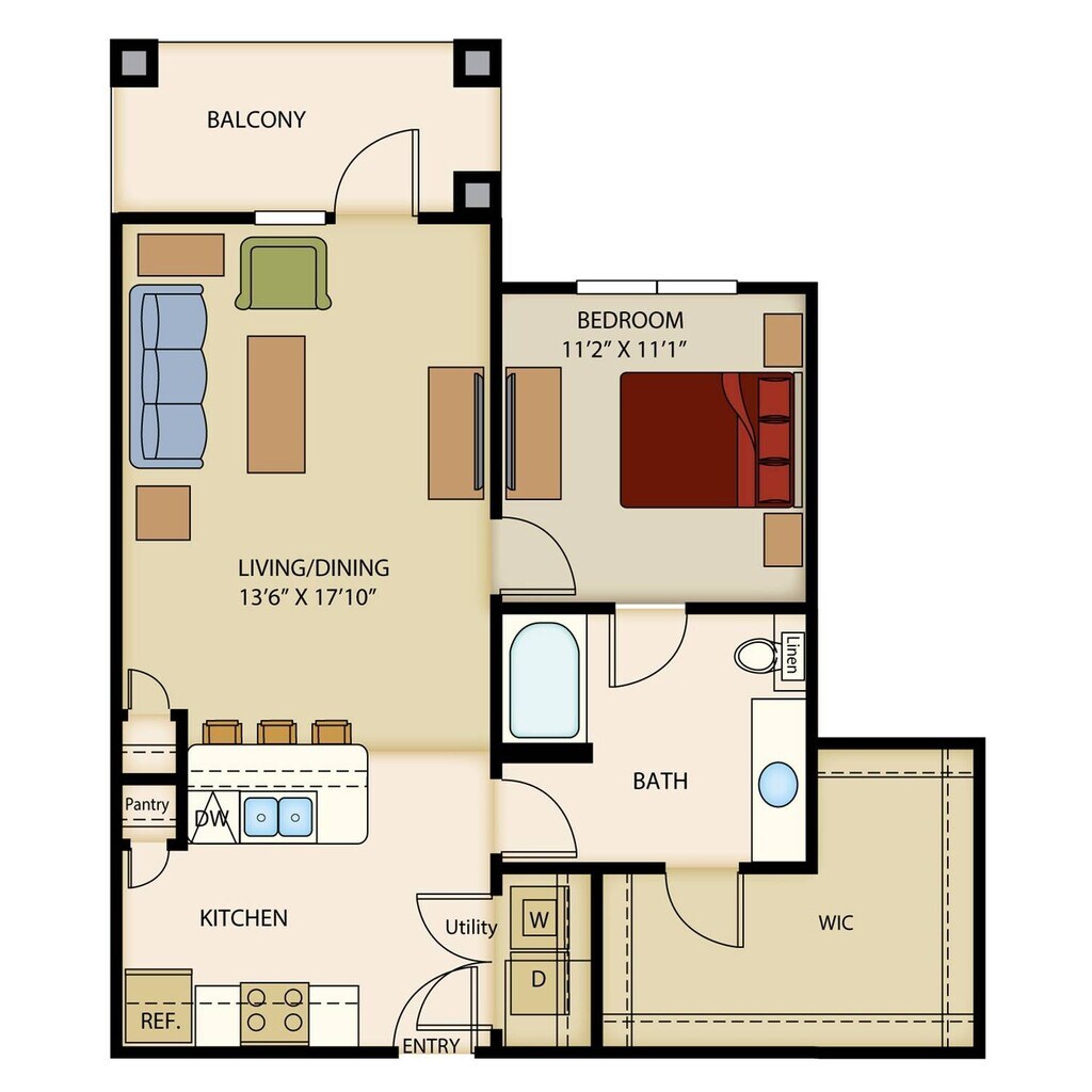 1 Dormitorio, 1 Baño, 638 pies²Disponible AhoraGalería del Modelo
