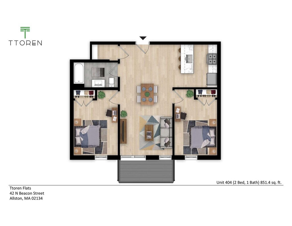 2 bed/ 1 bath - Plano Unidad de apartamento: 304Modelo de apartamento: 2 bed/ 1 bath$3,6002 Dormitorios, 1 Baño, 851 sq ftDisponible April 17, 2026![]()