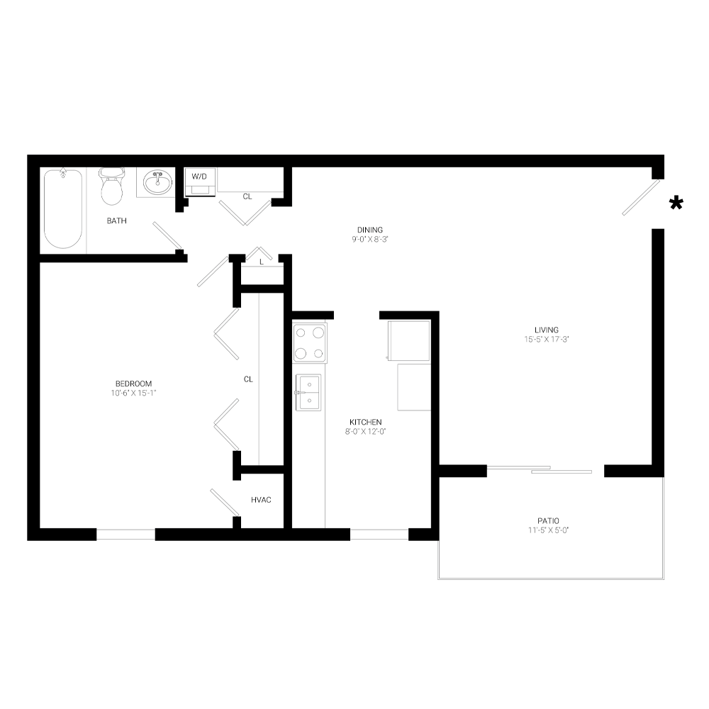 Modelo de apartamento: The Dogwood1 Dormitorio, 1 Baño, 725 sq ftDisponible Ahora![]()