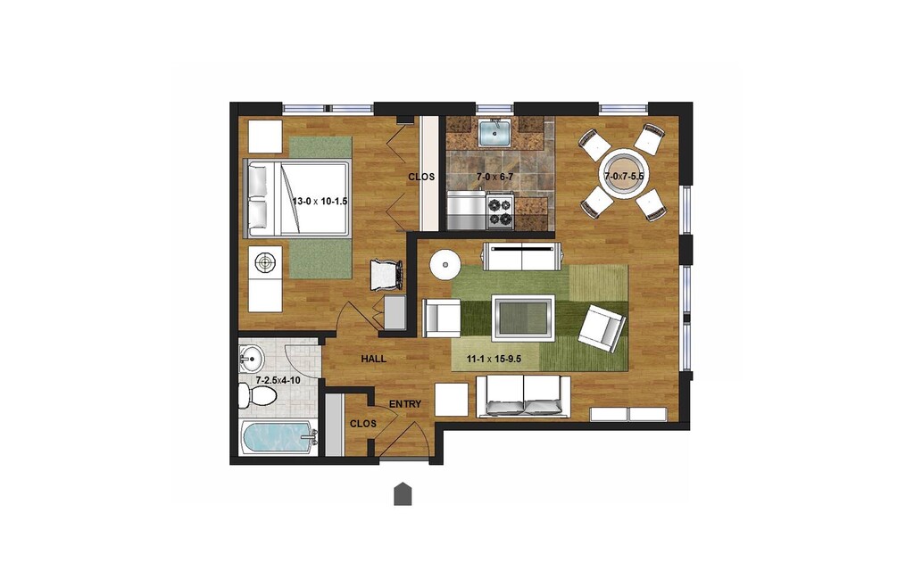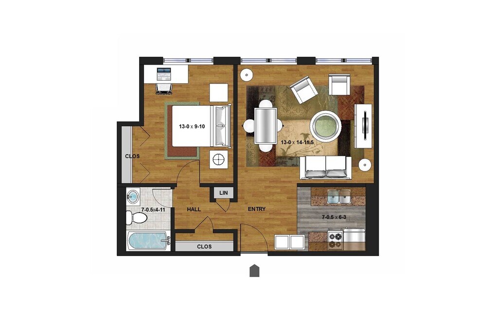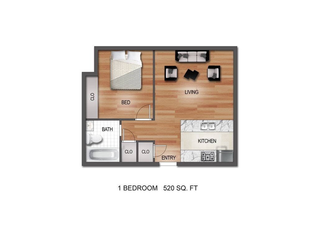 1 Dormitorio, 1 Baño, 515 pies²Precio Mensual TotalDisponible AhoraGalería del Modelo